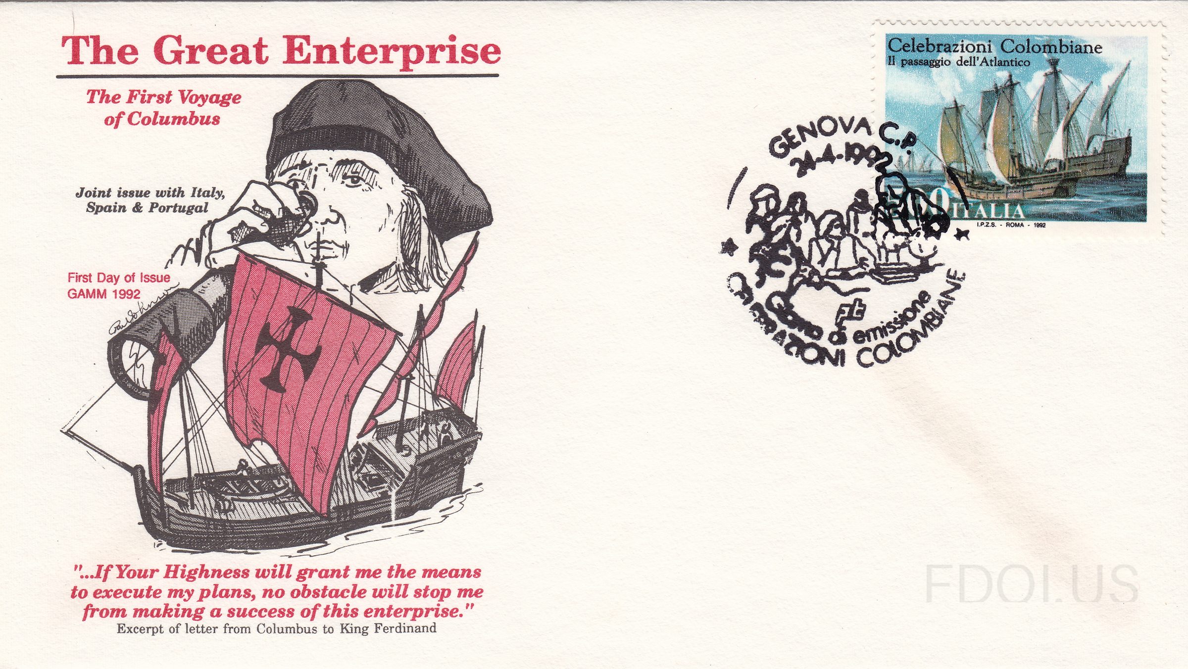 « Previous Next » First Voyage of Columbus View Full Size All Images First Voyage of Columbus Cachet Gerry Adlman GAMM Cachets Format Other Tags ChristopherColumbus GammCachets Italy JointIssue OfficialFirstDay Series UnitedStates Related Covers First Voyage of Columbus First Voyage of Columbus Italian block First Voyage of Columbus block First Voyage of Columbus First Voyage of Columbus First Voyage of Columbus
