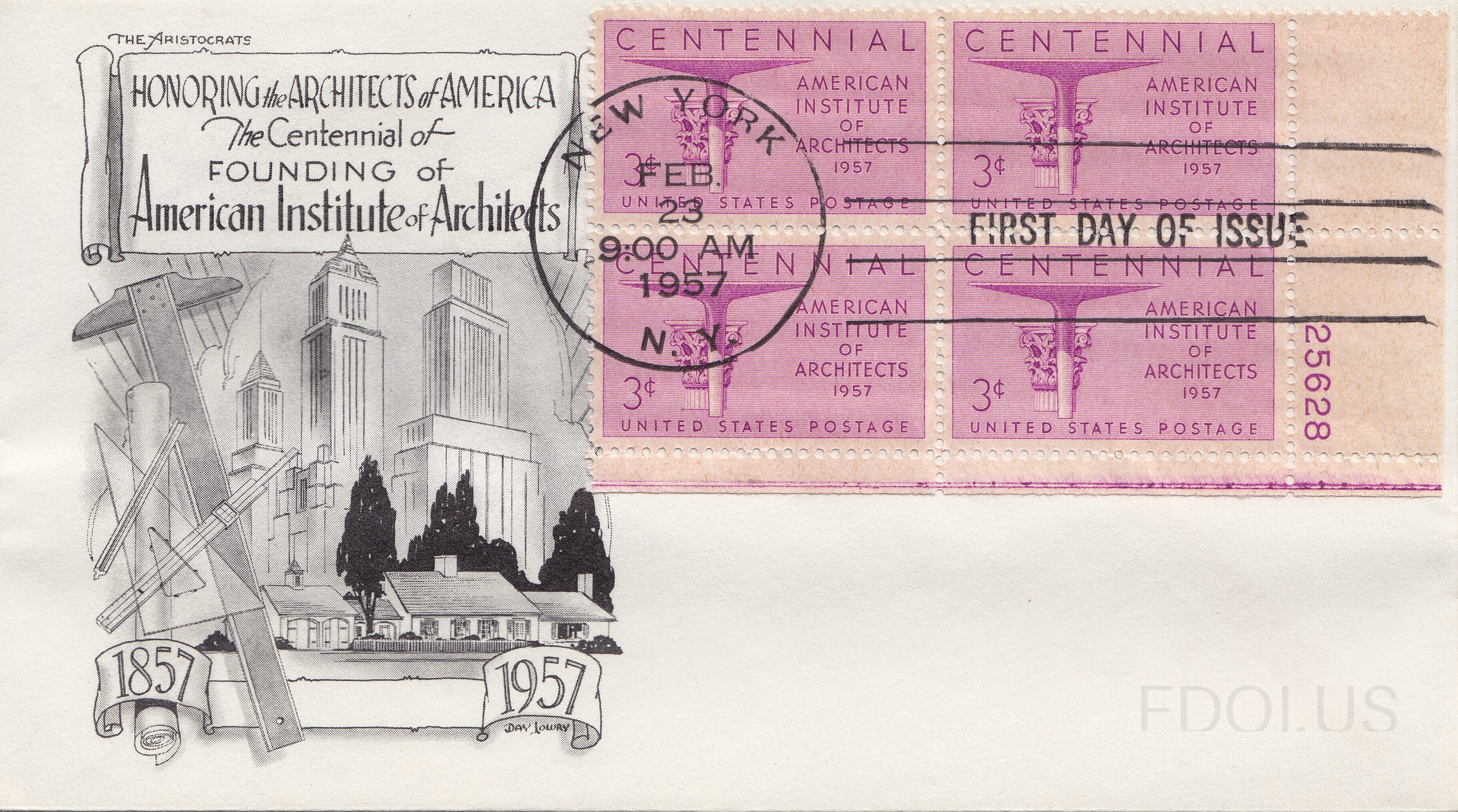 « Previous Next » American Institute of Architects plate block View Full Size All Images Aristocrats cachet for the AIA release with plate block hand-cancel Cachet Lowry Cachet Format Other Tags 100years 1950s AmericanInstituteOfArchitects Architecture Cachet LowryCachets OneColor PlateBlock Unaddressed Related Covers American Architecture TWA Terminal Garden Clubs of America Black Architects of America block Renwick Smithsonian Washington Architects of America C Stephen Anderson American Institute of Architects Cachet…