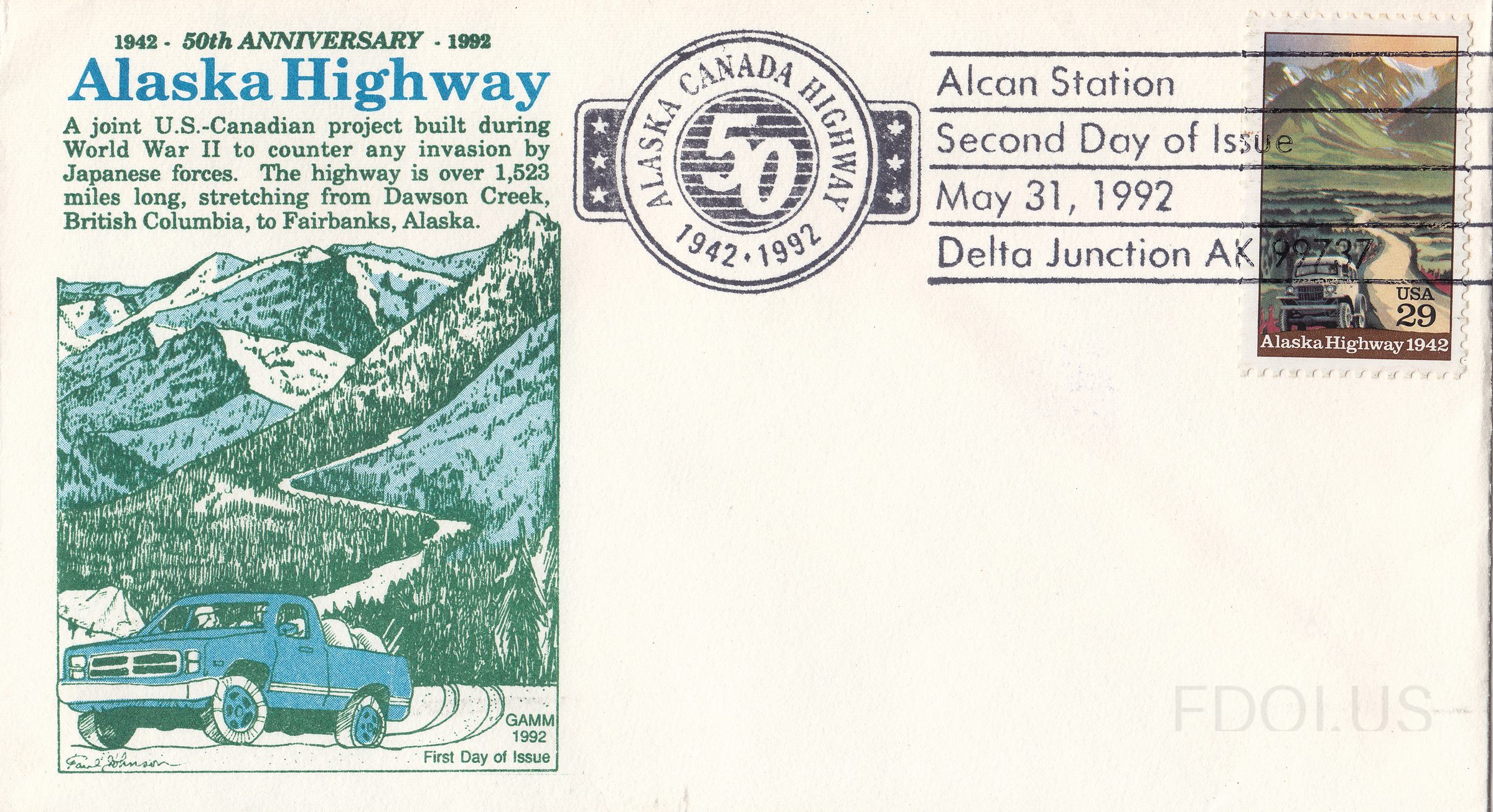 « Previous Alaska Highway Alcan Station View Full Size All Images Alaska Highway Alcan Station Second Day of Issue Cachet Gerry Adlman GAMM Cachets Format Other Tags Alaska GammCachets SecondDayOfIssue StationCancel Unaddressed Dates & Locations May 31, 1992 Delta Junction, AK, US Related Covers 21c Envelopes Gamm cachet First Moon Landing Priority Mail Tarrytown Architecture by GAMM Space Exploration $11.75 Hologram Expre… Seeing Eye Dog #1787 Gamm cachet First … 50th Anniversary Solo Transatlantic Fli…