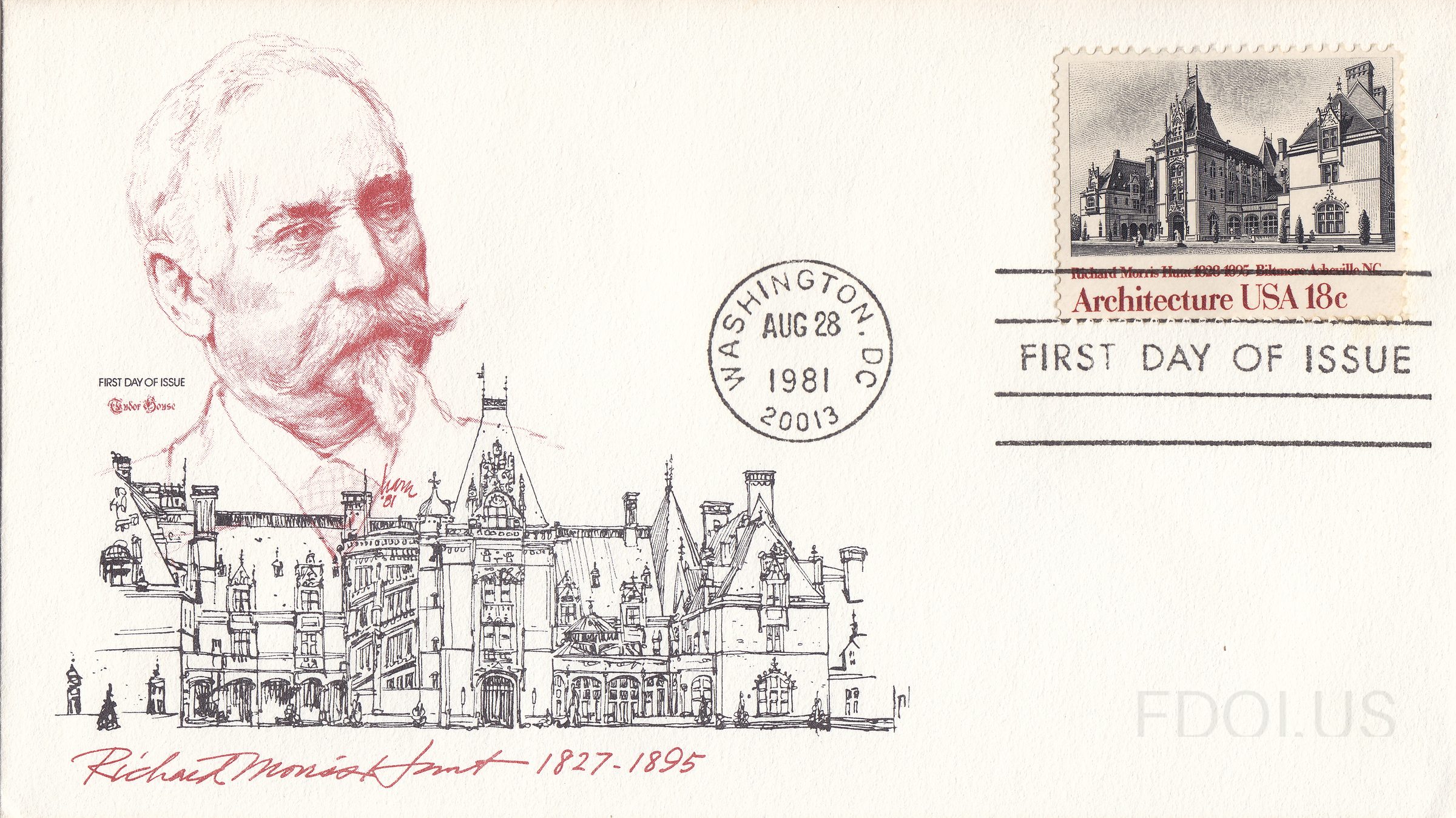 « Previous Richard Morris Hunt View Full Size All Images 1980 American Architecture series featuring Richard Morris Hunt Cachet Tudor House Tags Architecture OfficialFirstDay Series TudorHouseCachets TwoColors Dates & Locations Aug. 28, 1981 Washington, DC, US Related Covers NYU Library in New York by Stanford Whi… Bank in Owatonna Minnesota by Louis Sul… American Architecture 1981 block Ludwig Mies van der Rohe, Illinois Inst… Eero Saarinen, Dulles Airport Walter Gropius, Gropius House