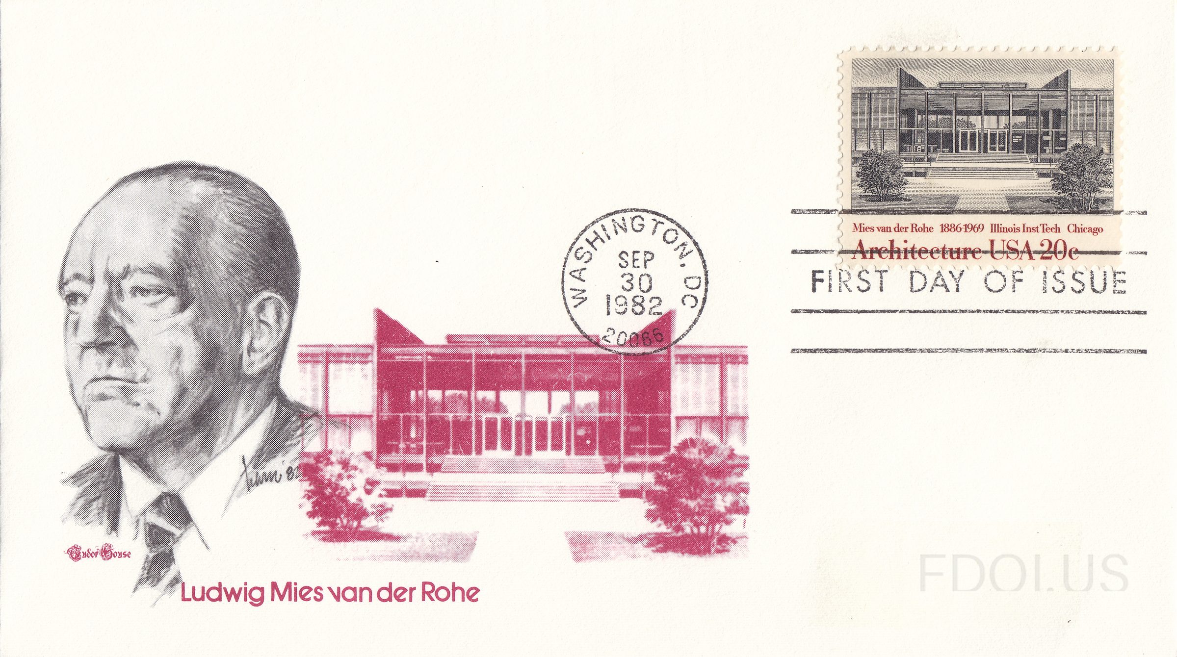 « Previous Next » Ludwig Mies van der Rohe, Illinois Institute of Technology View Full Size All Images 2019-22 20c American Architecture Tudor House cachet, set of 4. Cachet Tudor House Format Other Tags Architecture Cachet MachineCancel OfficialFirstDay TudorHouseCachets TwoColors Unaddressed Dates & Locations Sept. 30, 1982 Washington, DC, US Related Covers Walter Gropius, Gropius House Eero Saarinen, Dulles Airport American Architecture 1981 block The Great American Streetcar Fallingwater Frank Lloyd Wright Thomas H Gallaudet