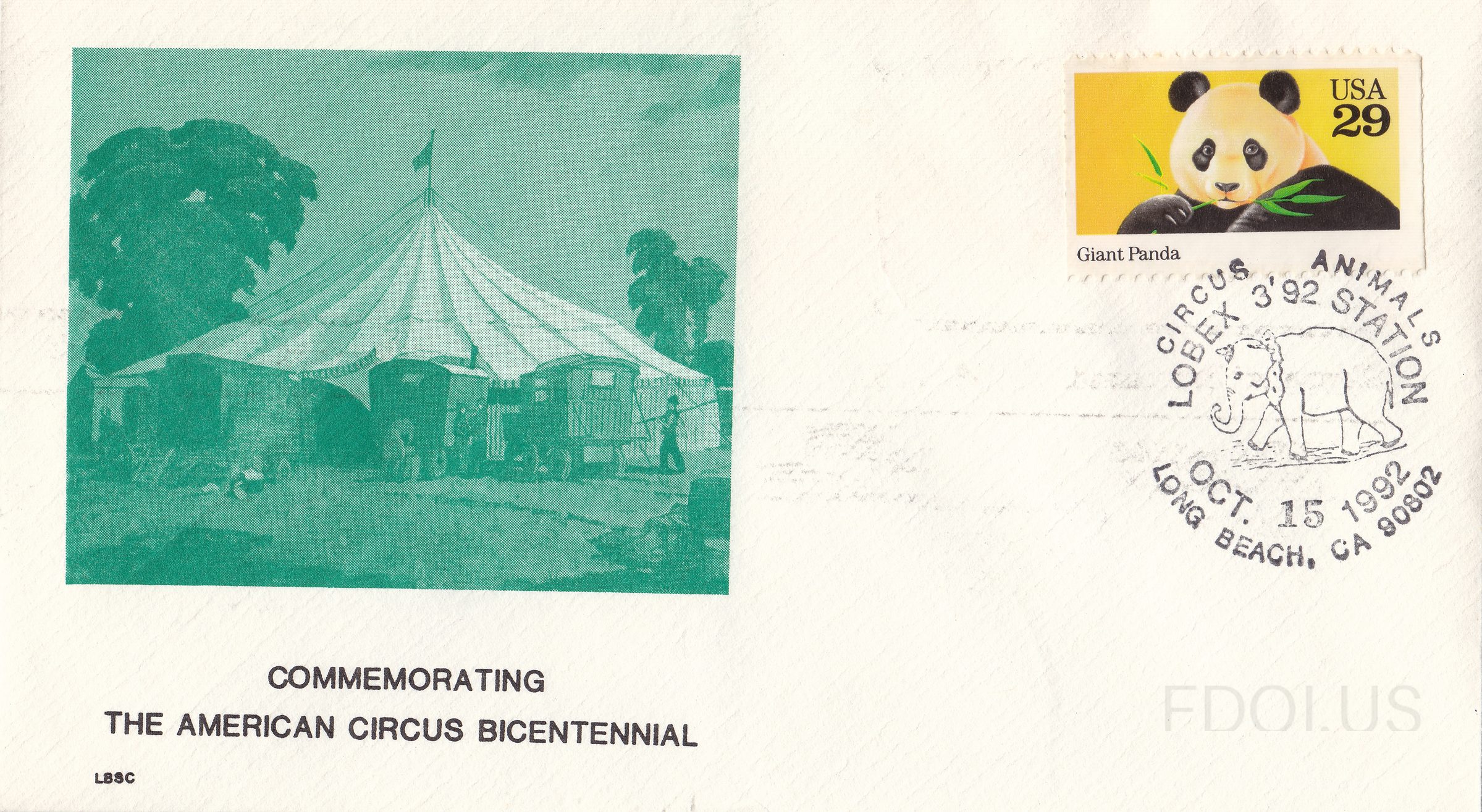 « Previous Lobex Station View Full Size All Images Commemorating the American Circus Bicentennial, cancel features an elephant and says Circus Animals. Format Other Tags 1990s 200years Animals Cachet Circus ShowCancel TwoColors Unaddressed Dates & Locations Oct. 15, 1992 Long Beach, CA, US Related Covers 1792 Kentucky Statehood Winnipeg Centennial Stamp Exhibition Presorted First-Class Flag Plate Number… First Moon Landing Priority Mail Space Exploration $11.75 Hologram Expre… Martin Luther King Jr