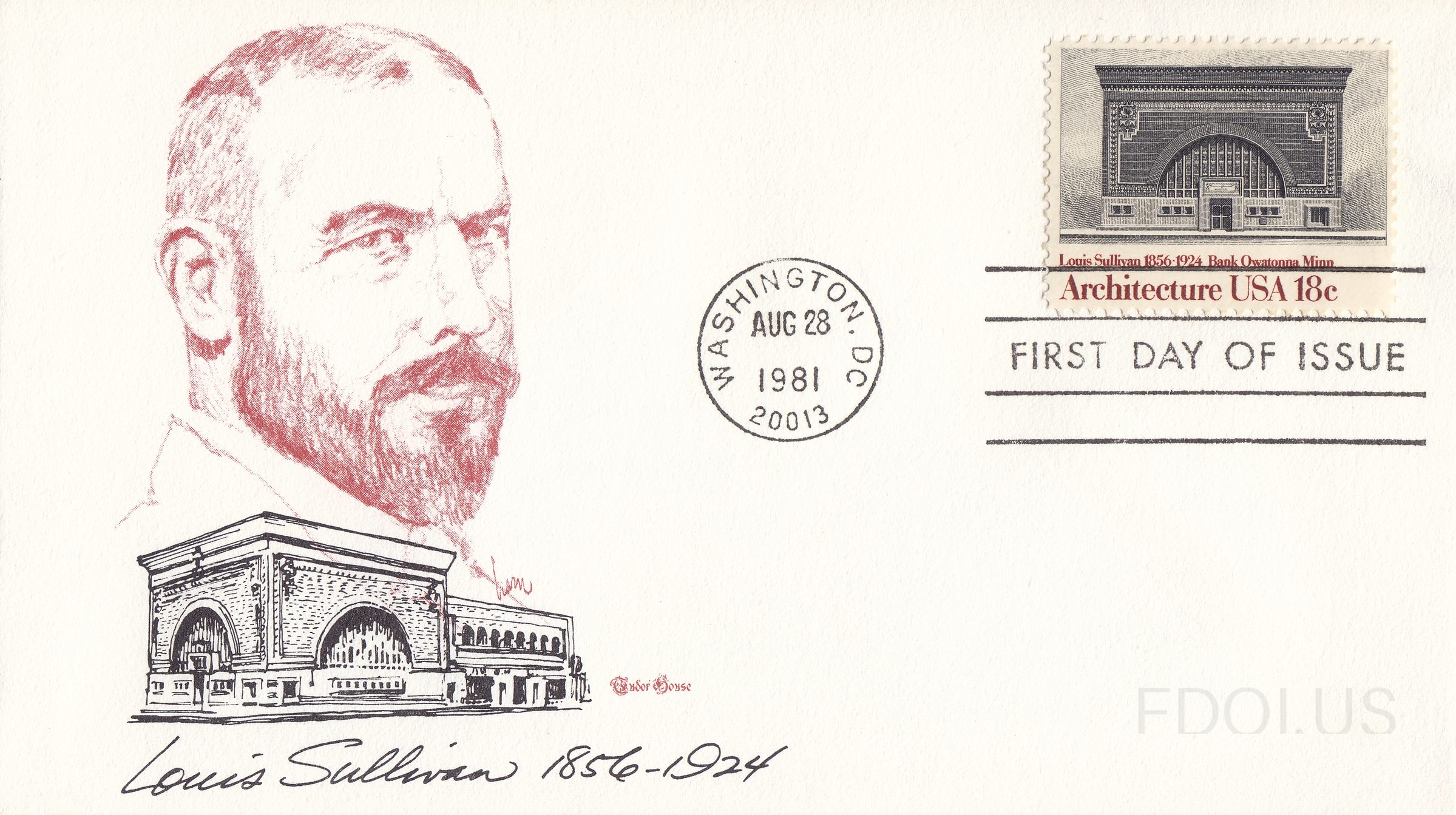 « Previous Bank in Owatonna Minnesota by Louis Sullivan View Full Size All Images Tudor House cachet for 1980 Architecture stamps with Bank in Owatonna Minnesota by Louis Sullivan. Cachet Tudor House Tags Architecture OfficialFirstDay Series TudorHouseCachets Dates & Locations Aug. 28, 1981 Washington, DC, US Related Covers NYU Library in New York by Stanford Whi… Richard Morris Hunt American Architecture 1981 block Ludwig Mies van der Rohe, Illinois Inst… Fallingwater Frank Lloyd Wright Eero Saarinen, Dulles Airport