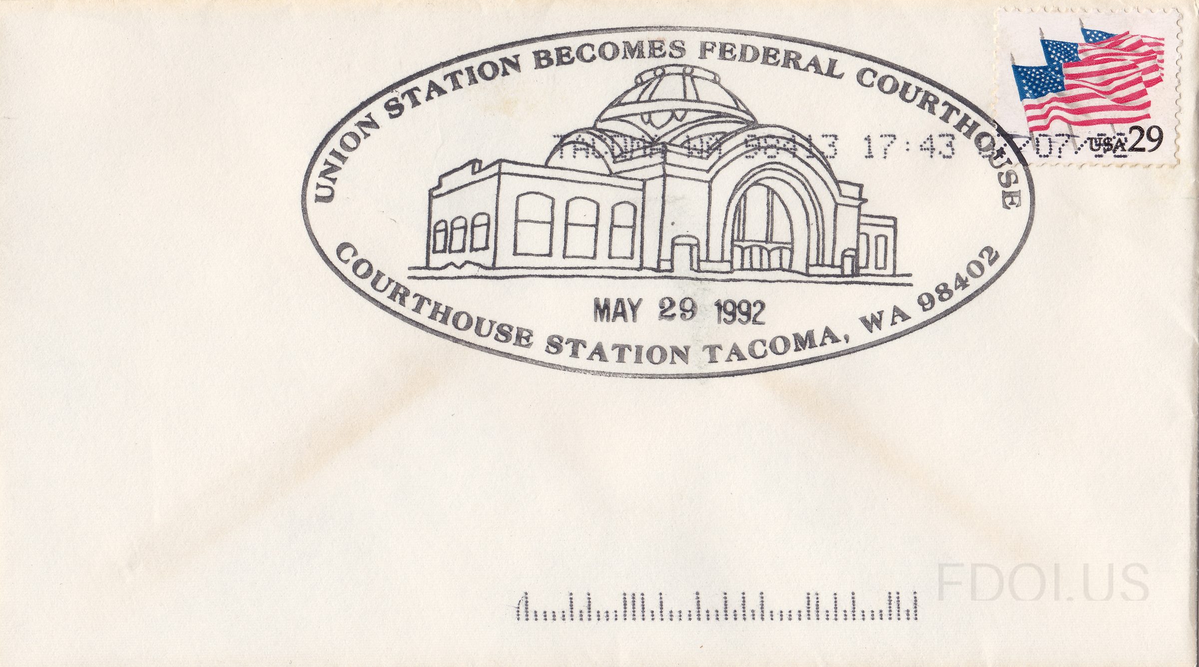 « Previous Union Station Becomes Federal Courthouse View Full Size All Images Tacoma Courthouse Station, Union Station Becomes Federal Courthouse Format Other Tags Flag HistoricPreservation PictorialCancel StationCancel Trains Dates & Locations May 29, 1992 Tacoma, WA, US Related Covers Obama 2009 Chicago Inaugural Cover Obama 2009 Wilmington Inaugural Cover Obama 2009 Honolulu Inaugural Cover 19th A World A'Fair Station Kirkwood Junction 100th Anniversary Flag Day For McHenry Station