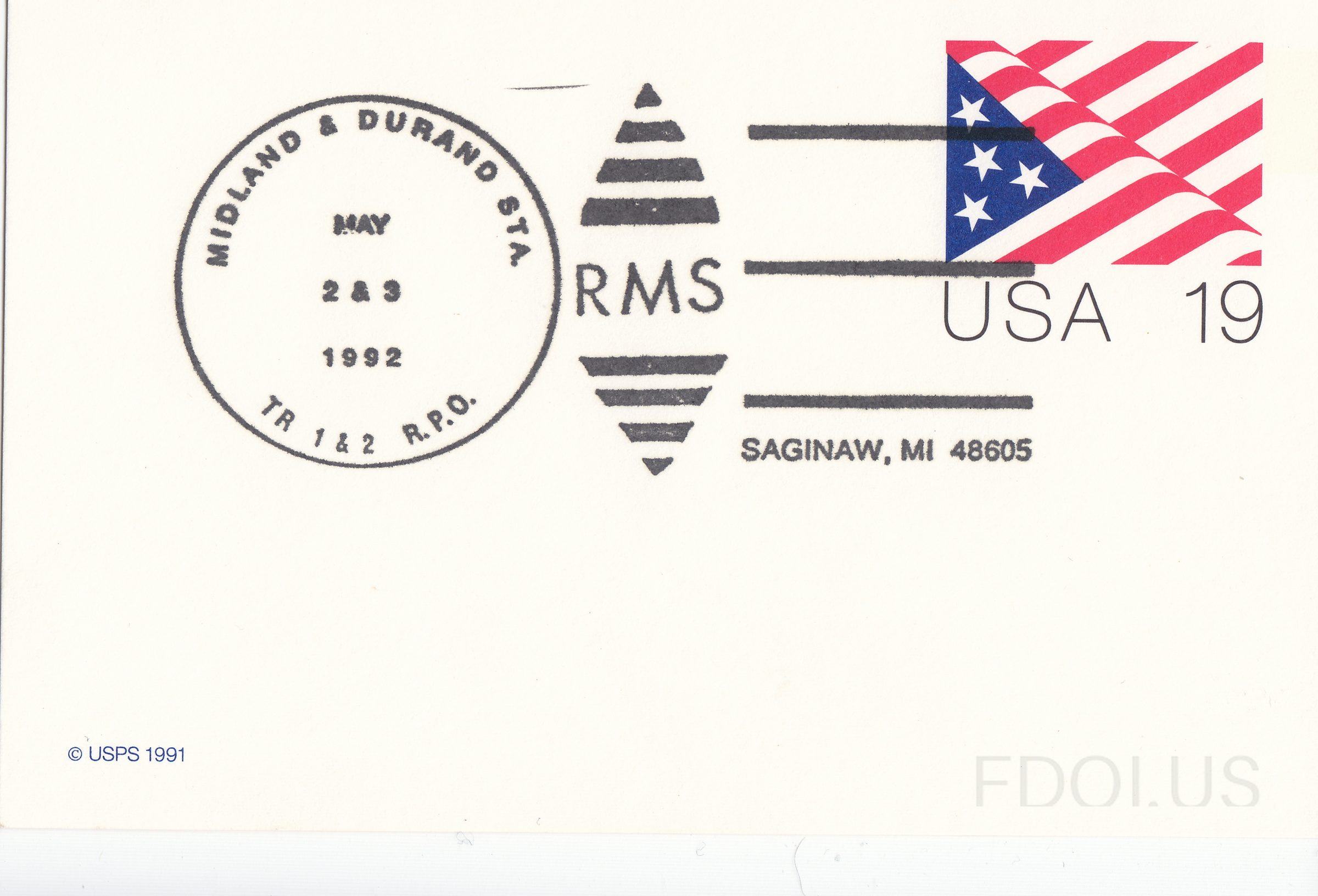 « Previous Midland and Durango Station View Full Size All Images RMS, Track 1 & 2 RPO Tags CropImage PictorialCancel PostalCard RailwayPostOffice Dates & Locations May 2, 1992 Saginaw, MI, US Related Covers Flag Day Francis Hopkinson Station Dorr Rebellion Station Encouraging Young Philatelists Flag Day Francis Hopkinson Station Tour du Pont Harrisonburg Tour du Pont Hot Springs