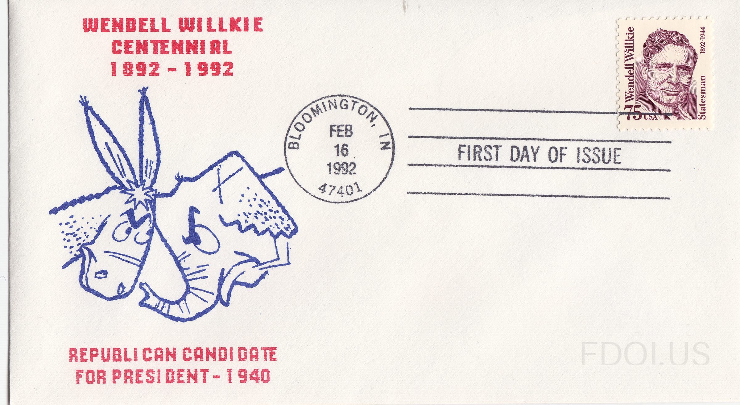 « Previous Next » Wendell Willkie View Full Size All Images Wendell Willkie Republican Candidate for President 1940 Format Other Tags 100years Cachet CropImage HandCancel OfficialFirstDay TwoColors Unaddressed WendellWillkie Dates & Locations Feb. 16, 1992 Bloomington, IN, US Related Covers Wendell Willkie Wendell Willkie Theodore von Karman Winnipeg Centennial Stamp Exhibition Wendell Willkie First Moon Landing Priority Mail