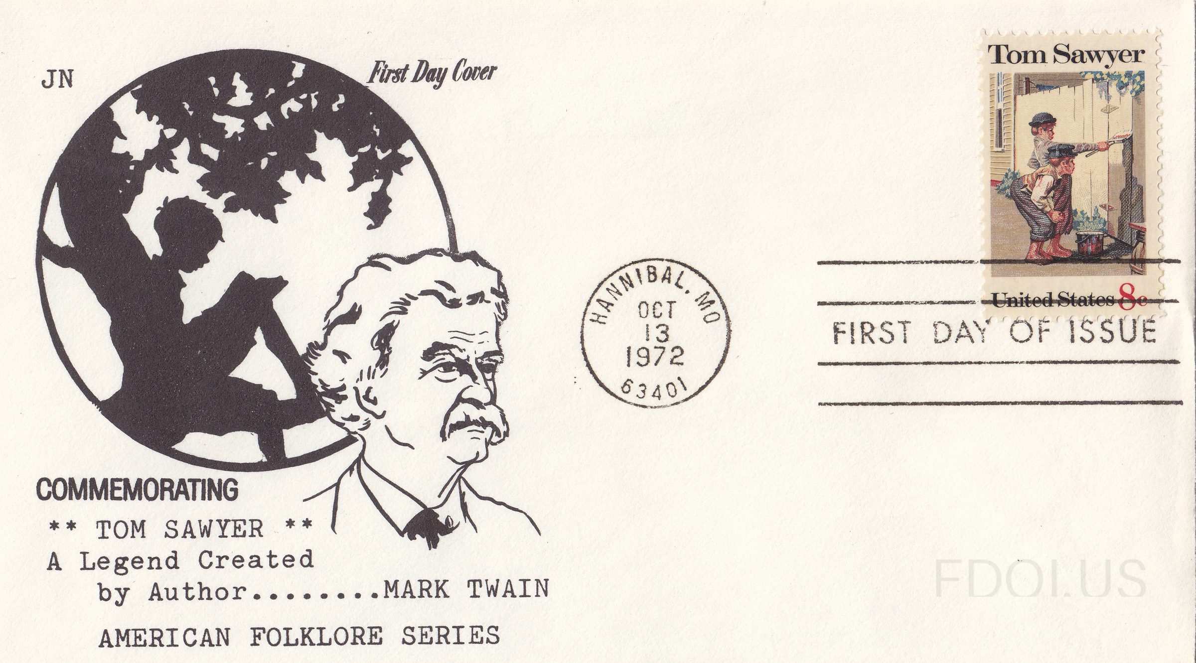 « Previous Tom Sawyer, American Folklore Series View Full Size All Images A Legend Created by Author Mark Twain. JN Cachet with silhouette of boy sitting in tree and portrait of Mark Twain. Cachet Jean Nicklin JN Cachets Tags Cachet JeanNicklinCachets OfficialFirstDay OneColor Unaddressed Dates & Locations Oct. 13, 1972 Hannibal, MO, US Related Covers Stone Mountain Memorial Pan Am Games Unofficial Self Adhesive Rose Statue of Liberty at Americover 1994 Flag 1988 Elvis Presley