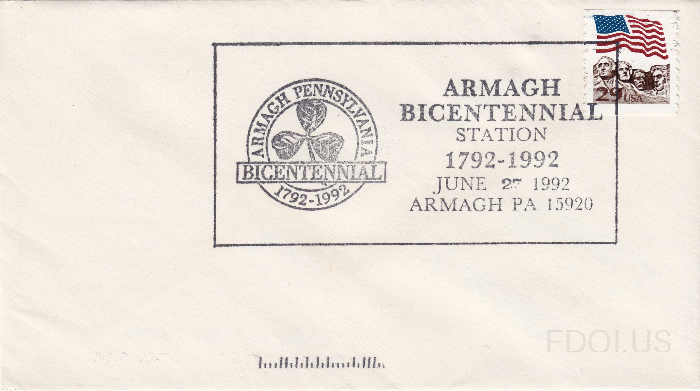 « Previous Appalachian Wagon Trail Mail View Full Size All Images Additional Images Rear cancel is 135th Anniversary Station from Marion Center on June 21 with a green marking for Received Carried Onboard Appalachian Wagon Train. Front cancel is Armagh Bicentennial on June 27. Tags BackStamp Coil MoreThanOneImage PostOfficeHistory StationCancel Unaddressed Dates & Locations June 21, 1992 Marion Center, PA, US June 27, 1992 Armagh, PA, US Related Covers Armagh Bicentennial Station with Wagon … George W Bush First Term Inauguration Long Beach Business Center North Dakota Engine Show Winnipeg Centennial Stamp Exhibition 25th National Postal Forum