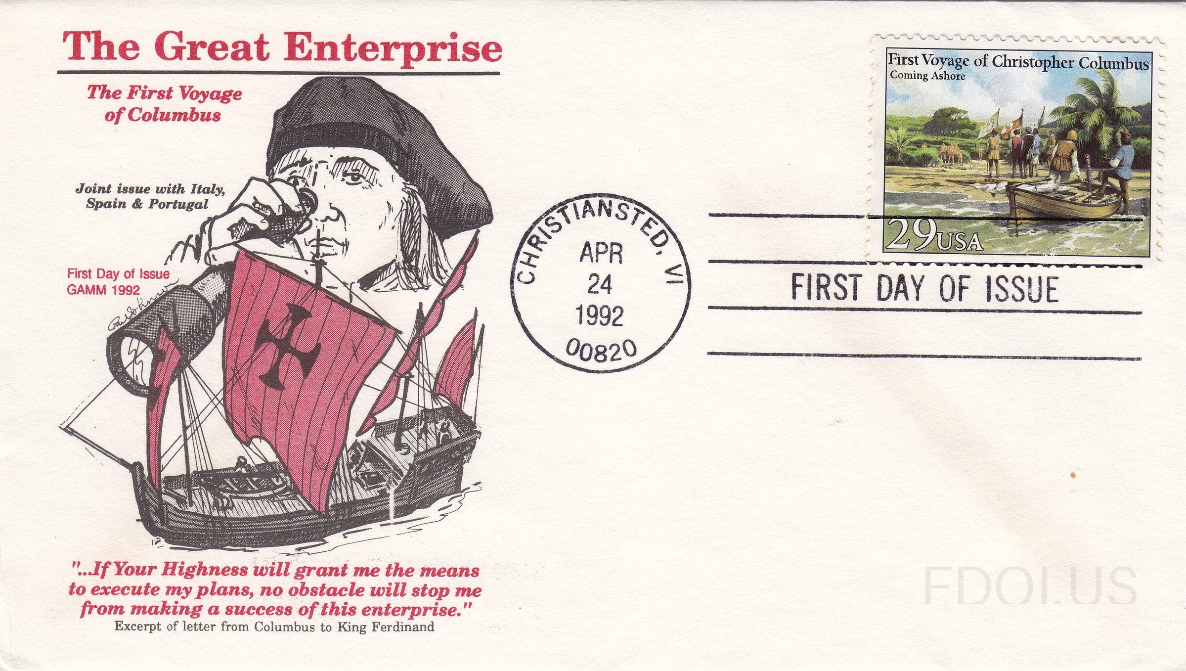 « Previous Next » First Voyage of Columbus View Full Size All Images First Voyage of Columbus Cachet Gerry Adlman GAMM Cachets Format Other Tags ChristopherColumbus GammCachets Italy JointIssue OfficialFirstDay Series UnitedStates Dates & Locations April 24, 1992 Christiansted, VI, US Related Covers First Voyage of Columbus block First Voyage of Columbus First Voyage of Columbus First Voyage of Columbus First Voyage of Columbus First Voyage of Columbus Italian block