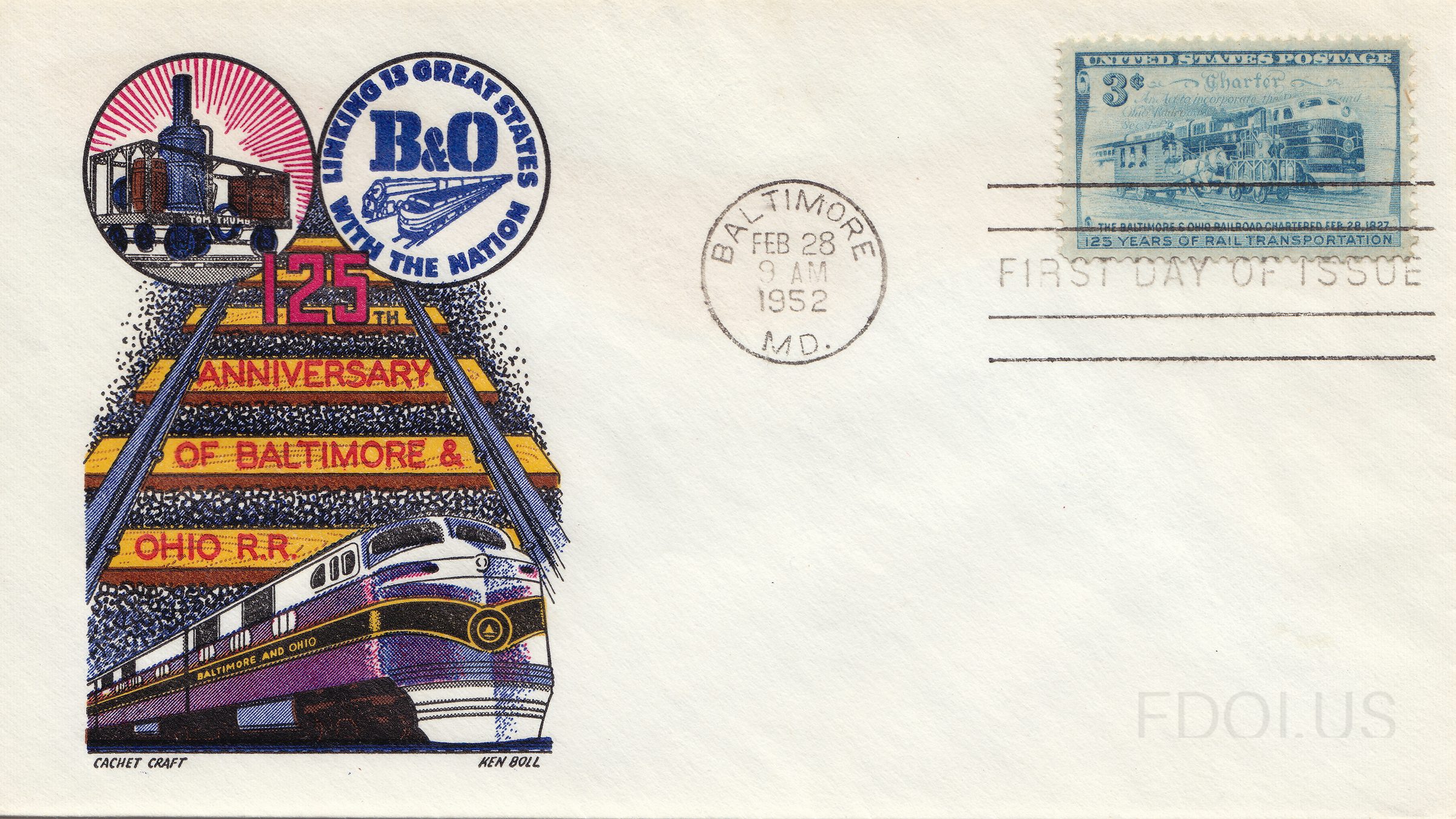 « Previous Next » 125th Anniversary of Rail Transporation and the Baltimore and Ohio Railroad View Full Size All Images 1006 3c Baltimore and Ohio Railroad Mellone #9, Cachetcraft/Ken Boll multicolor cachet, unaddressed. Cachet Ken Boll Cachet Craft Format Other Stamps Scott #1006 Mellone #9 Tags 125years 1950s Cachet CachetCraft KenBollCachets MachineCancel Multicolor Trains Unaddressed Dates & Locations Feb. 28, 1952 Baltimore, MD, US Related Covers House of Farnham Nudes The Great American Streetcar Friendship Key to World Peace American Institute of Architects Cachet… Obama 2009 Wilmington Inaugural Cover Ludwig Mies van der Rohe, Illinois Inst…