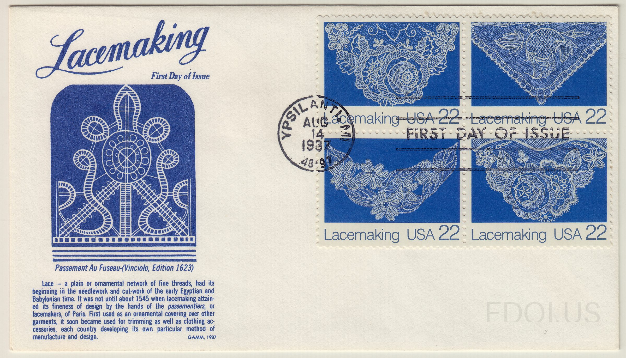 « Previous Next » Lacemaking View Full Size All Images Lacemaking block Cachet Gerry Adlman GAMM Cachets Format Other Tags 1980s GammCachets Dates & Locations Aug. 14, 1987 Ypsilanti, MI, US Related Covers Puppy and kitten, postal card rate Olympic Sailing Postal Card Lyndhurst, American Architecture 1980 Ameripex 86 Ballooning Olympic Sailing Postal Card