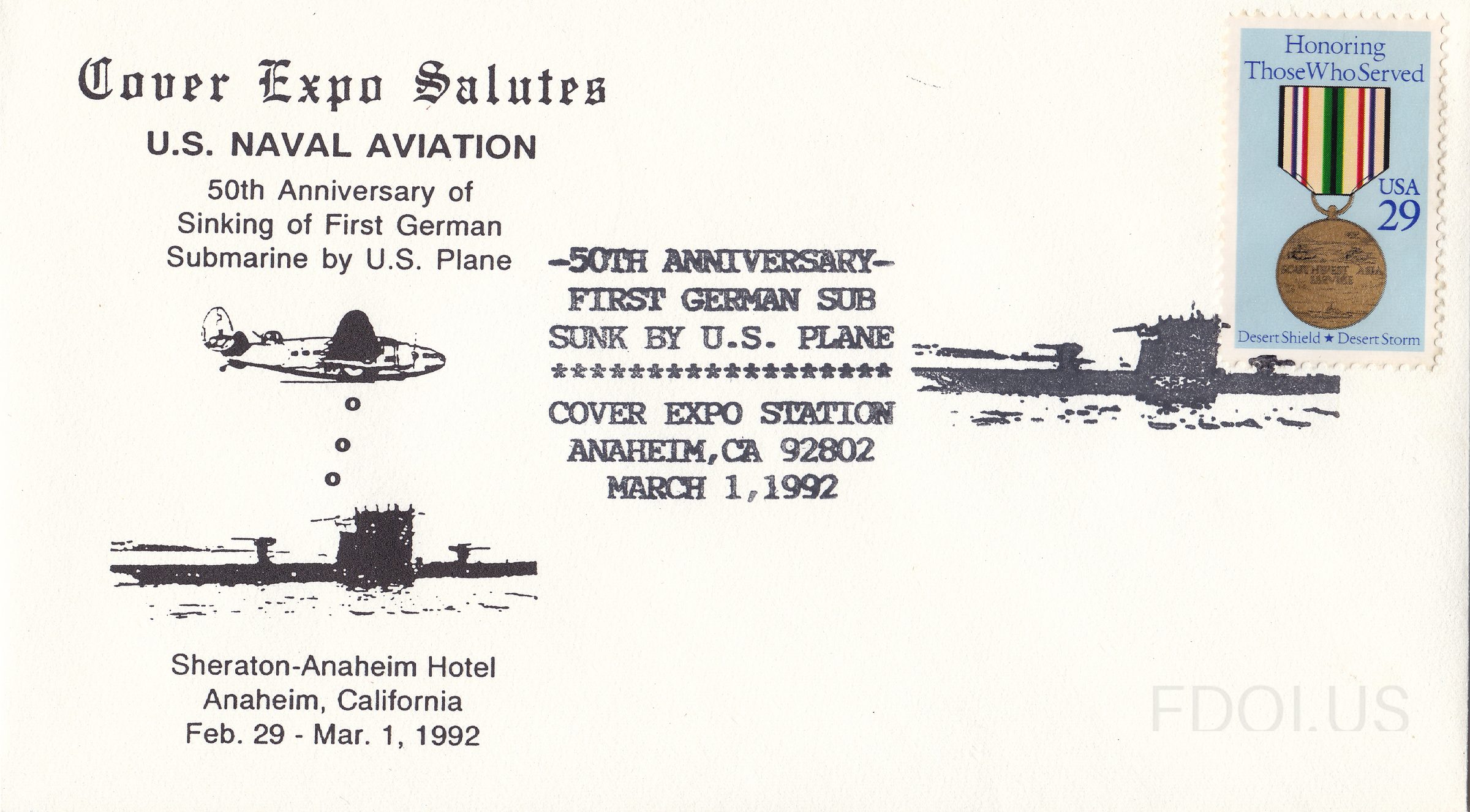 « Previous Cover Expo Salutes US Naval Aviation View Full Size All Images 50th Anniversary of Sinking of First German Submarine by US Plane Format Other Tags Cachet ShowCancel Unaddressed WorldWarTwo Dates & Locations March 1, 1992 Anaheim, CA, US Related Covers Corpex Station World at War WWII Louipex 83 Winnipeg Centennial Stamp Exhibition One Flag Over All, Azapex Station Stamp Collecting Day