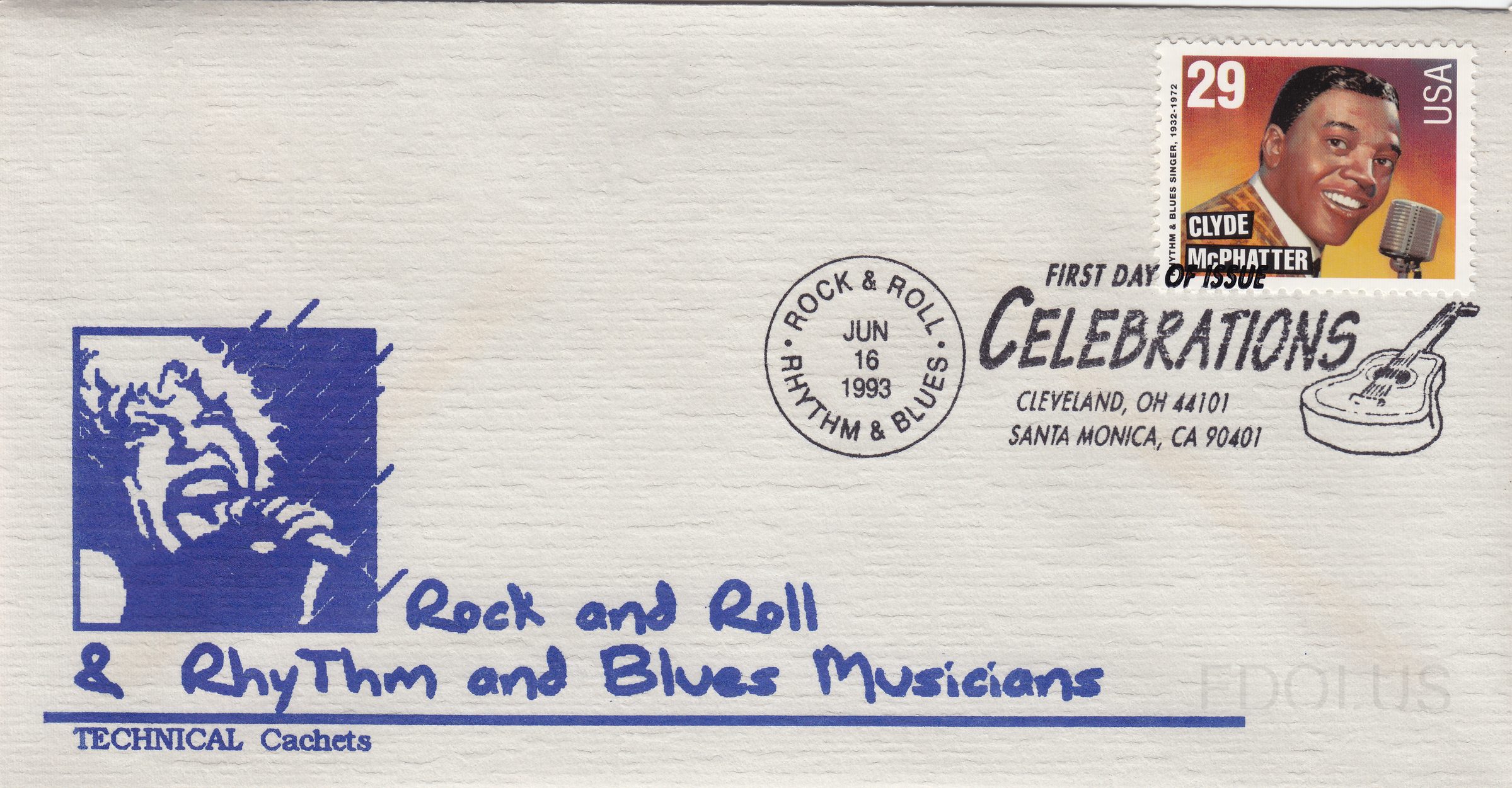 « Previous Next » Clyde McPhatter View Full Size All Images Rock and Roll and Rhythm and Blues Musicians Cachet Technical Cachets Format Other Tags Music OfficialFirstDay TechnicalCachets Related Covers Otis Redding Bill Haley Musicians plate number strip of three. Elvis Presley second release Musicians strip of four Buddy Holly