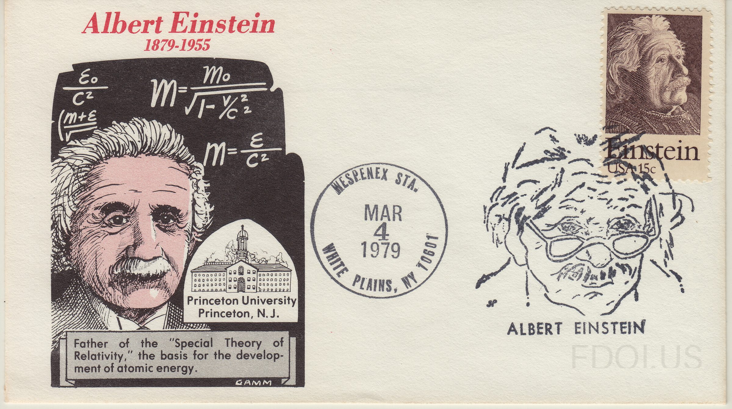 « Previous Next » Albert Einstein View Full Size All Images Albert Einstein, Wespenex Station Cachet Gerry Adlman GAMM Cachets Format Other Tags AlbertEinstein GammCachets PictorialCancel StationCancel UnofficialFirstDay Dates & Locations March 4, 1979 White Plains, NY, US Related Covers Albert Einstein First Moon Landing, at Smithsonian Let Freedom Ring American Architecture … James Madison $2 sheet Seaplane 1991 Express Mail