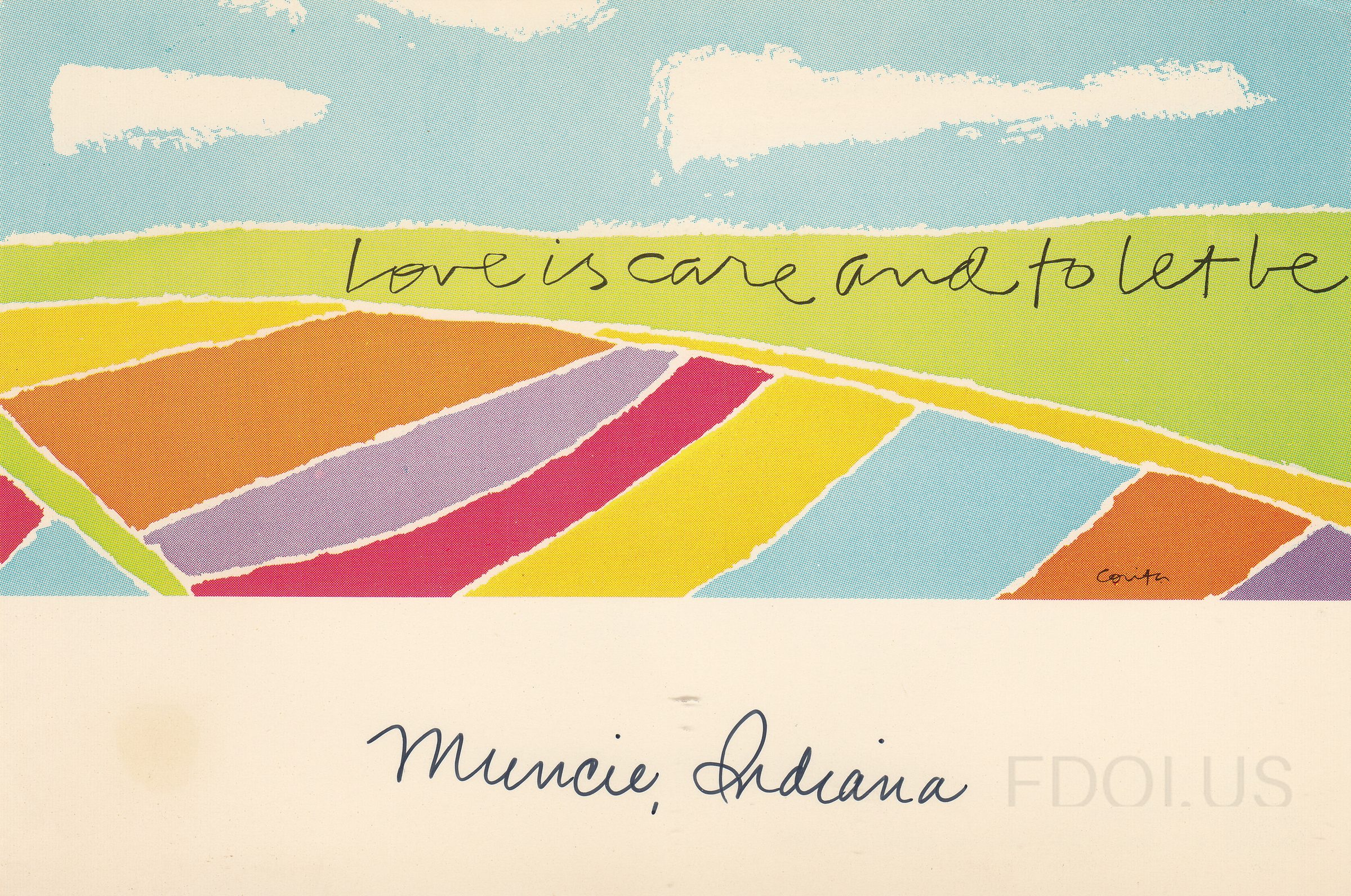 « Previous Next » Love is care and to let be. View Full Size All Images Additional Images Corita Kent billboard from Muncie Indiana, Love is care and to let be. Format Other Tags CoritaKent Love MoreThanOneImage PostCard Related Covers Love is care and to let be. Dublin Post Card of River Liffey Stockholm Post Card La Creazione dell'uomo Translating War Into Peace Vienna Christmas and Art History Museum