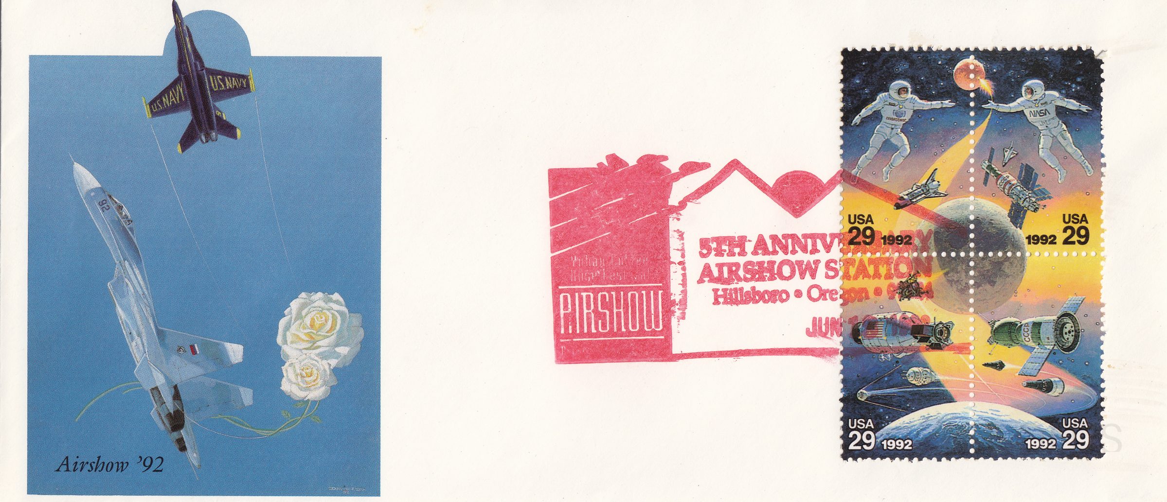 « Previous Hillsboro Airshow View Full Size All Images Color cachet with a station cancel from an airshow on a block of four space stamps. Tags ShowCancel Space Related Covers Stockholmia 86 Russia Stamp Agency in America Honoring American Space Exploration IndyPex 1992, 35 Years in Space IndyPex 1992, 35 Years in Space. Sputni… WCSE India Stamp