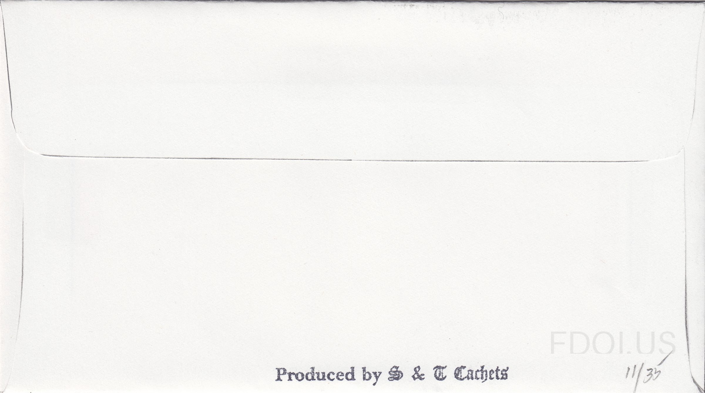 This First Day Cover features a plain back side produced by S & T Cachets, a respected cachet maker known for quality philatelic covers. The cover is part of a limited numbered series, with this example marked as number 11 of 35 produced, indicating its collectible status. While the reverse shows no artwork, the S & T Cachets imprint in elegant Old English lettering authenticates this as a professionally produced first day cover from this established maker.