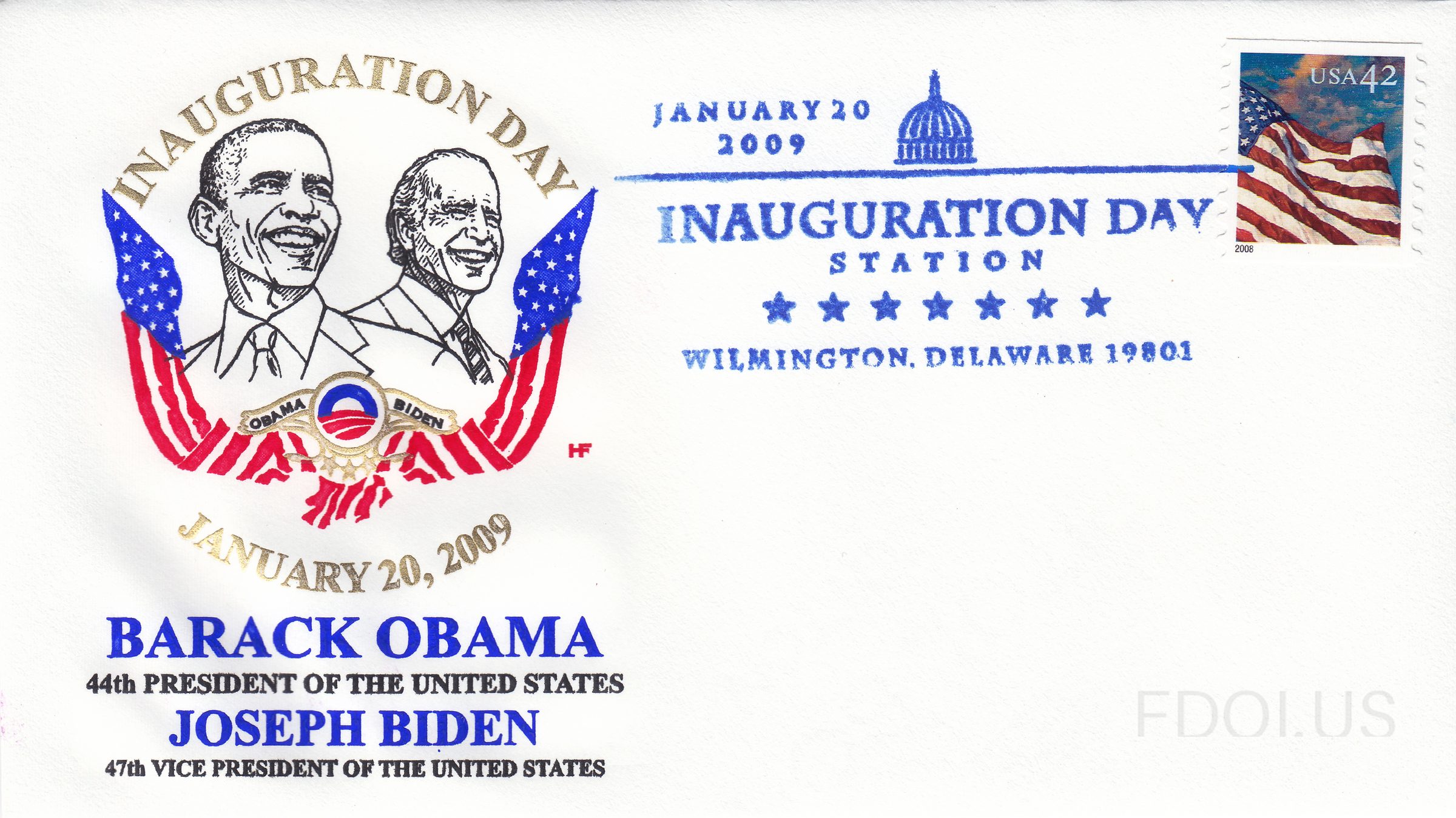 « Previous Next » Obama 2009 Wilmington Inaugural Cover View Full Size All Images Obama 2009 Wilmington Cachet House of Farnum Format Other Tags BarackObama HouseOfFarnamCachet InauguralCover JoeBiden Patriotic PictorialCancel StationCancel Dates & Locations Jan. 20, 2009 Wilmington, DE, US Related Covers Obama 2009 Wilmington Inaugural Cover Obama 2009 Chicago Inaugural Cover Obama 2009 Honolulu Inaugural Cover Obama 2009 Scranton Inaugural Cover Obama 2009 Washington Inaugural Cover Obama 2009 Occidental College Inaugural…